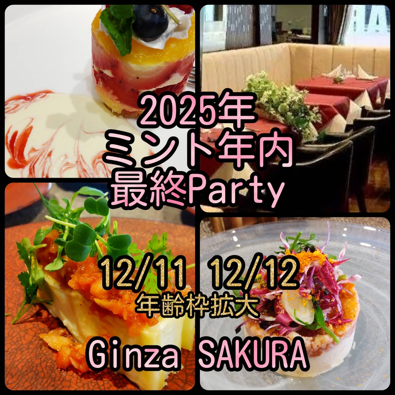 参加人数が多い場合は、年齢でグループ分けし、全てのテーブル移動が出来ない事もあります。 ミントは話し易い4人テーブル。男女同数 優雅な雰囲気の中、楽しく既婚者同士の交流ができます。 GINZAシックス隣。ホテルグレイスリー銀座内のレストランです。 スタッフ2名で、合コン形式の席替えを丁寧にサポート。 Mintでは男女スタッフが親切に必ずフォローしますので、初めて、お一人でもご安心下さい。 ミントは心地よいお時間と、スムーズな受付・スタートを心がけています。| 日時 | 25年12月11日(木) |
